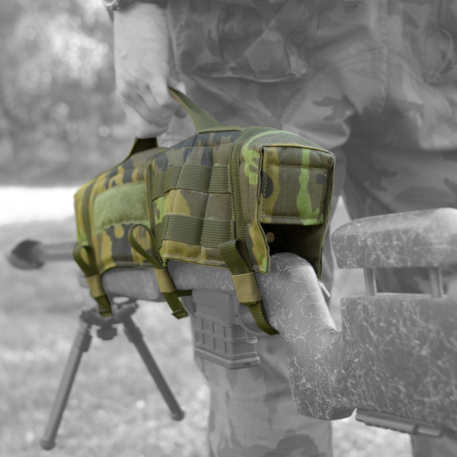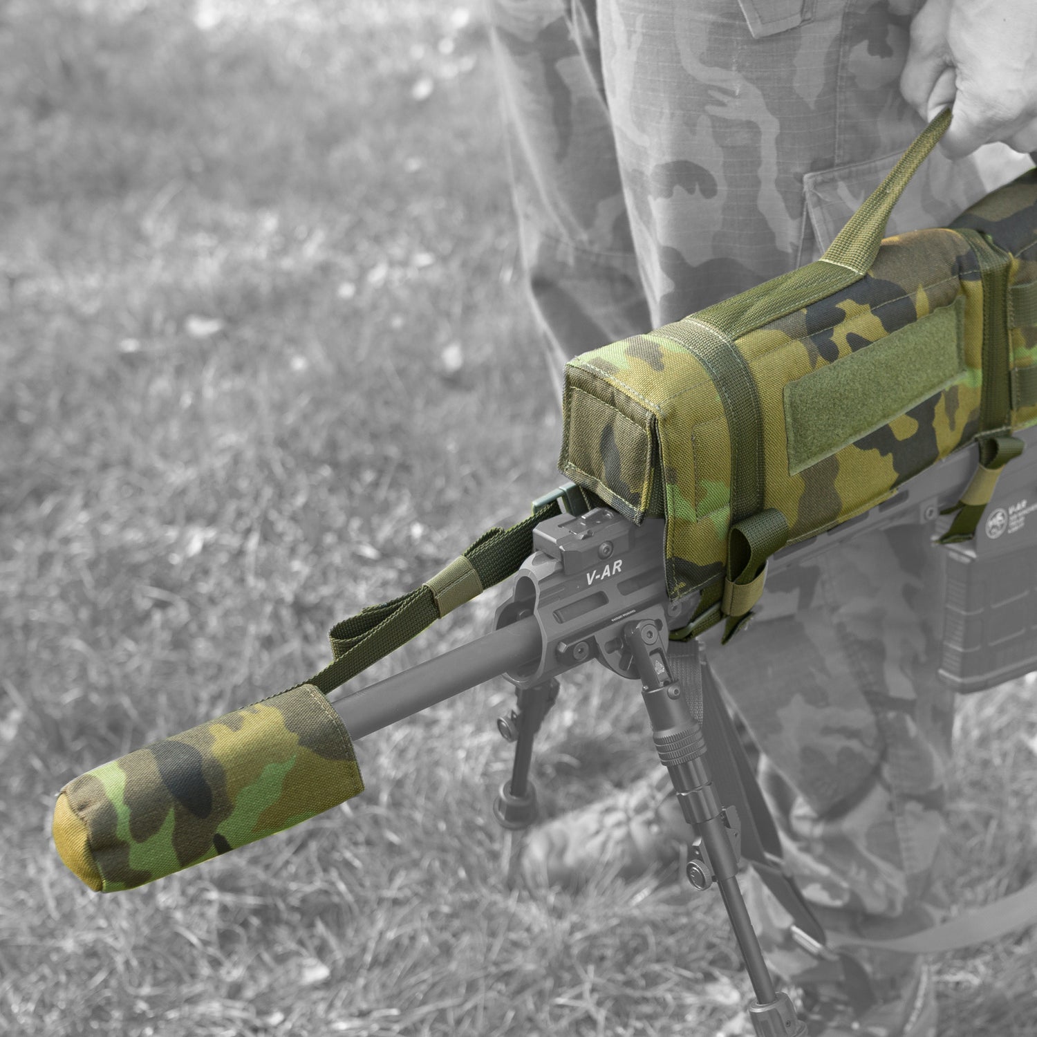 Die Befestigung der Abdeckung am Gewehr erfolgt über Dreizacke mit verstellbarer Riemenlänge, was eine Anpassung und Befestigung an der überwiegenden Mehrheit der Gewehre ermöglicht.