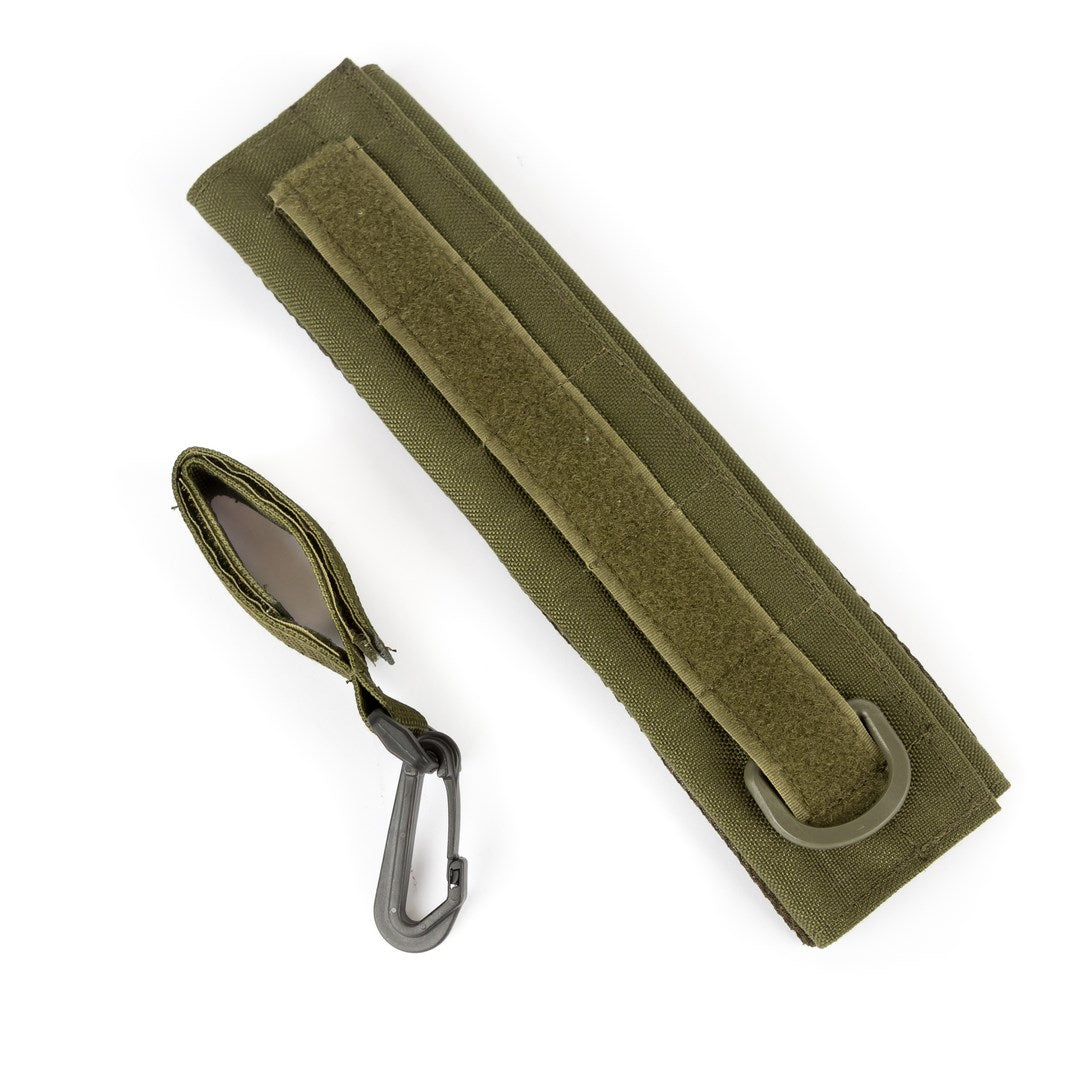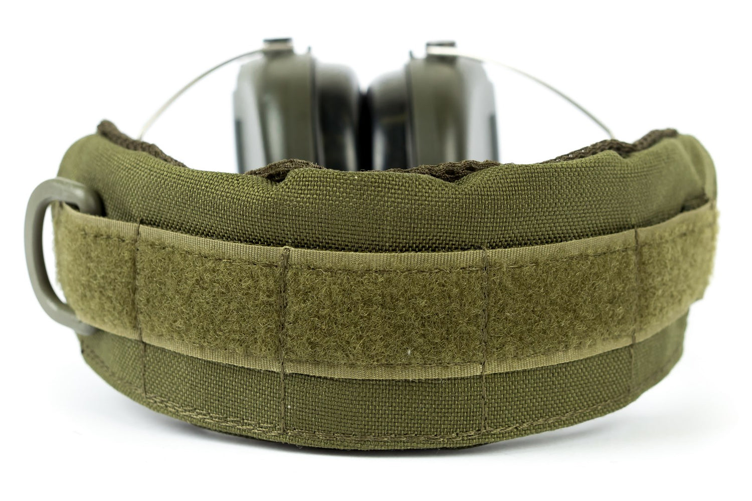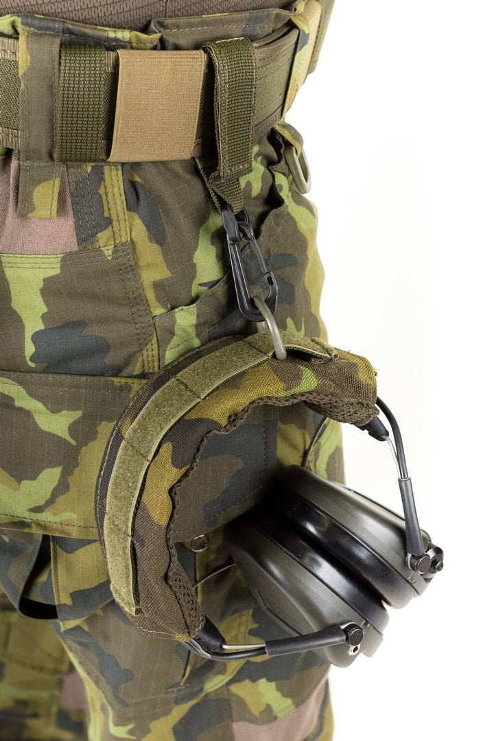 Polstrovaný obal na střelecká sluchátka má ze spodní strany 3D síťovinu pro odvod tepla a z vrchní strany Molle popruh s Velcrem pro ID nášivky a D-Ringem. Součástí výrobku je také poutko na opasek s háčkem, na který si můžete sluchátka pověsit.