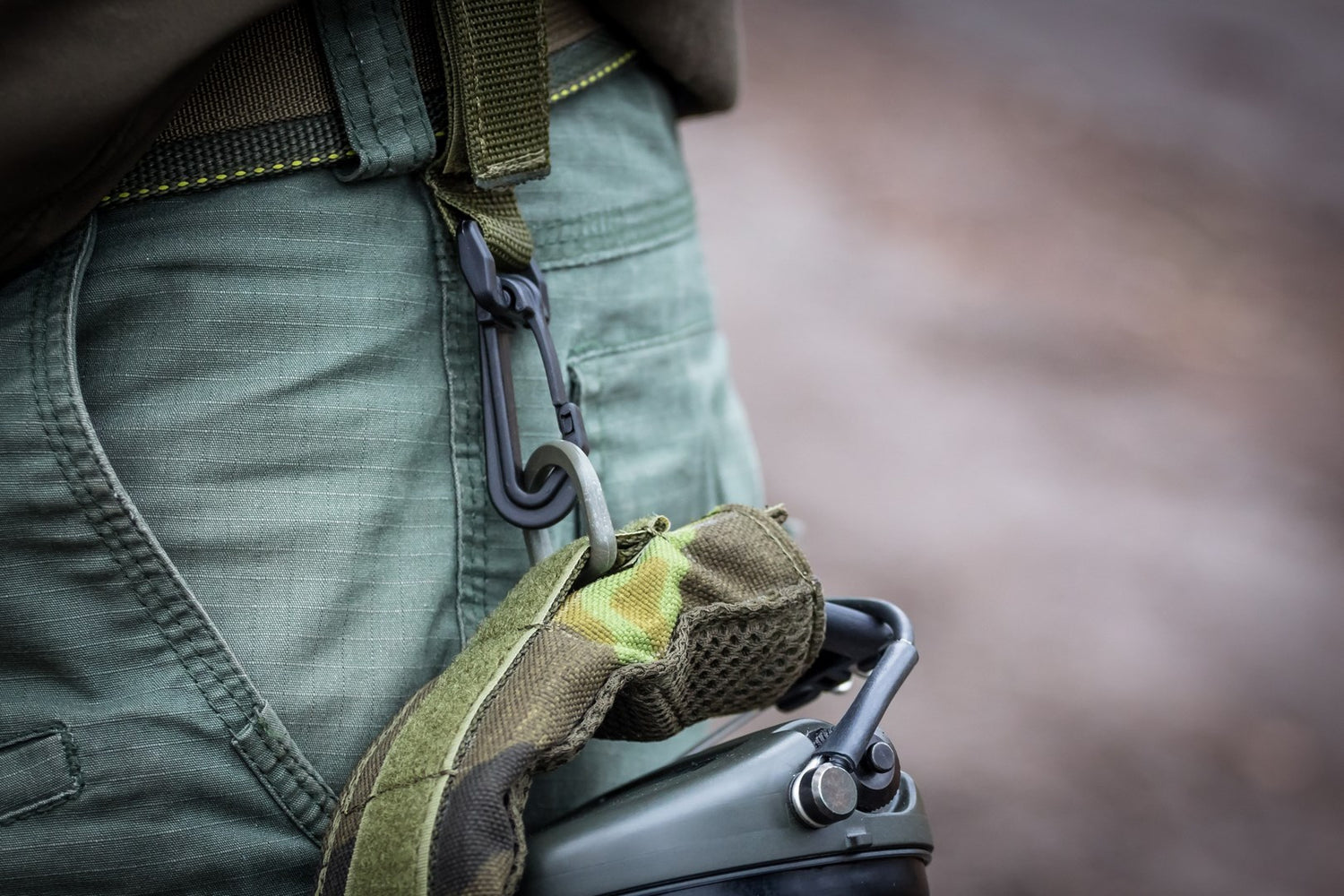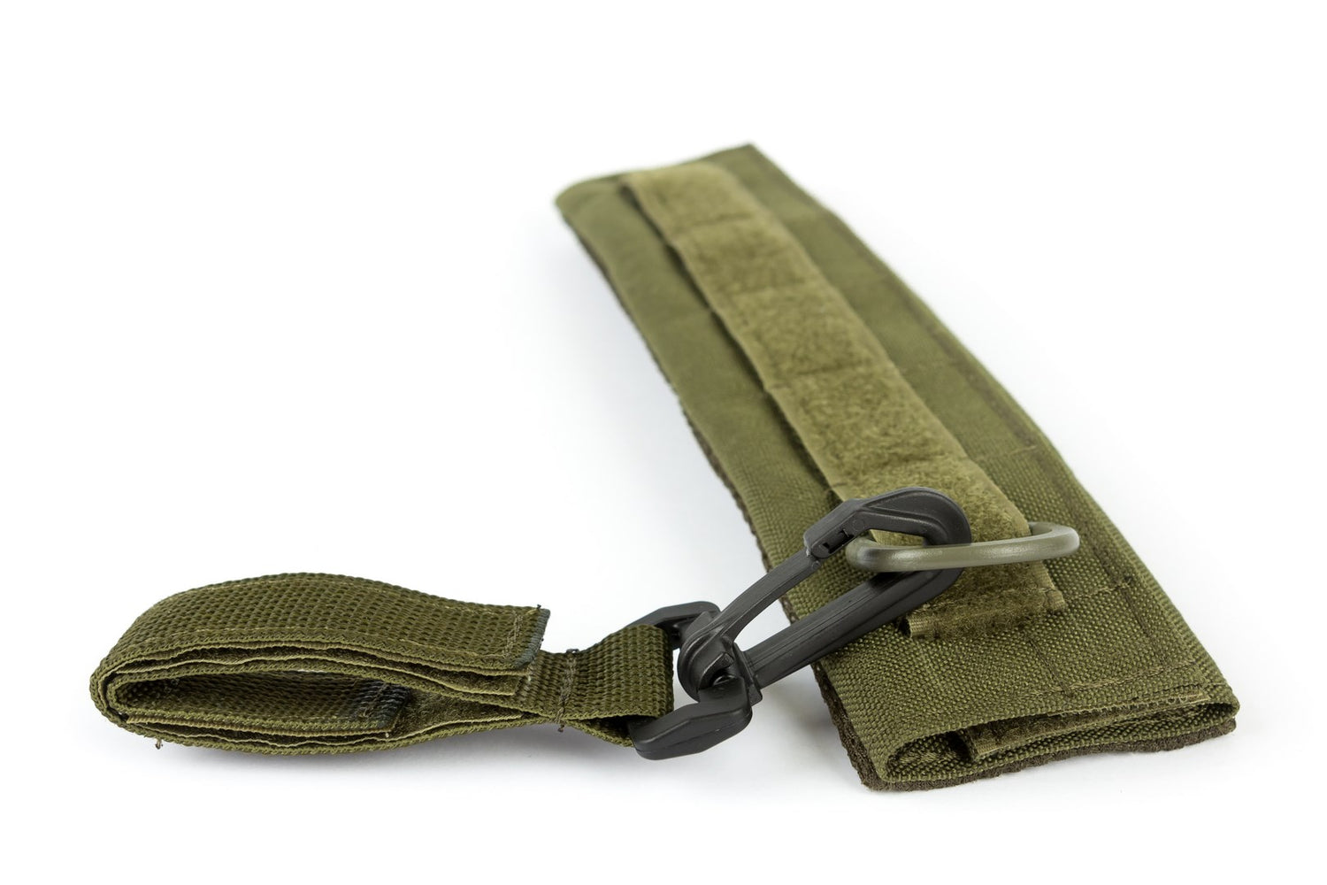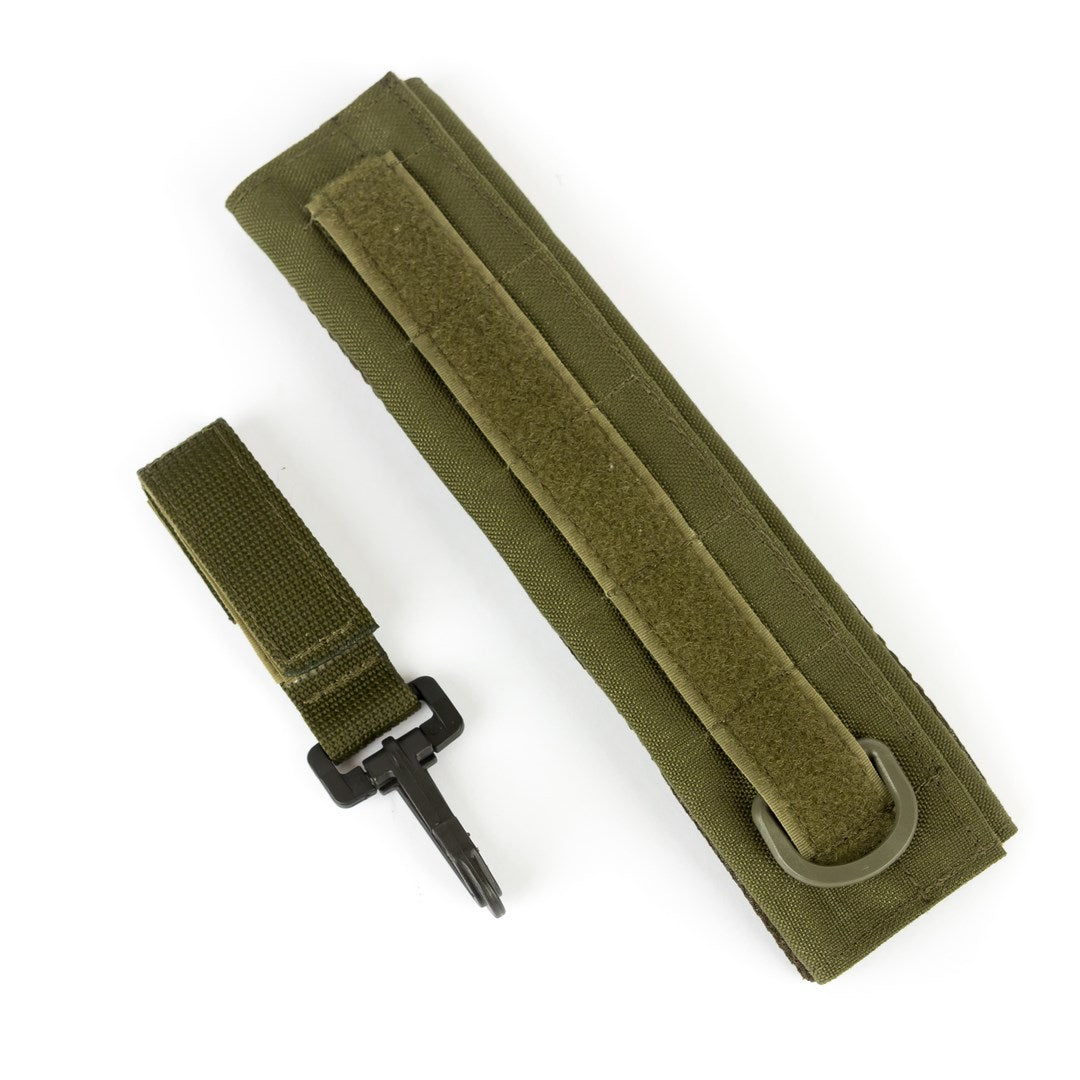 Polstrovaný obal na střelecká sluchátka má ze spodní strany 3D síťovinu pro odvod tepla a z vrchní strany Molle popruh s Velcrem pro ID nášivky a D-Ringem. Součástí výrobku je také poutko na opasek s háčkem, na který si můžete sluchátka pověsit.