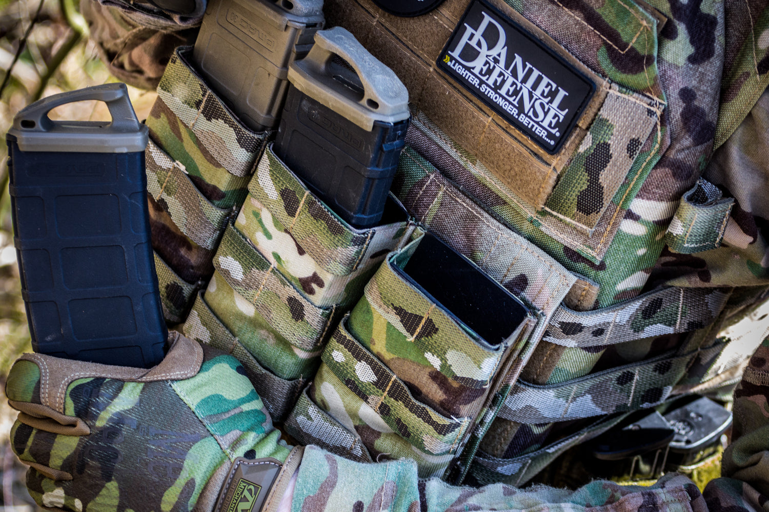Samosvorná sumka FAST na 3 zásobníky AR 15 je vyrobena z kydexových vložek, které drží vložené zásobníky a obalu z Cordury. Je vymyšlena tak, aby šly zásobníky jednoduše vyjmout a také vložit zpět při taktickém přebití. MOLLE vazba pro upevnění dalších sumek je našita i na čelní straně sumky.