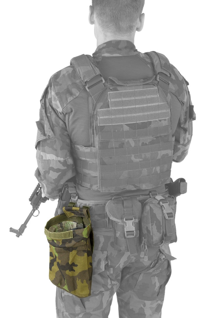 Vak se upevňuje pomocí popruhů, které jsou našity na zadní straně a jsou přizpůsobeny k upnutí na MOLLE i UV vazbu.