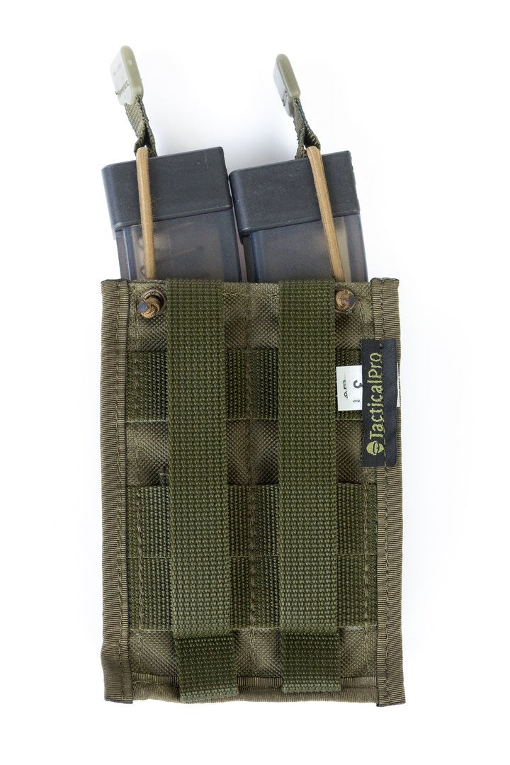 Sumka Q na 2 zásobníky na 30 nábojů pro samopal CZ SCORPION EVO 3. Zásobník je v sumce jištěný kulatou gumou s gumovým úchytem pro snadný úchop i v rukavicích. MOLLE vazba pro upevnění dalších sumek je našita i na čelní straně sumky.